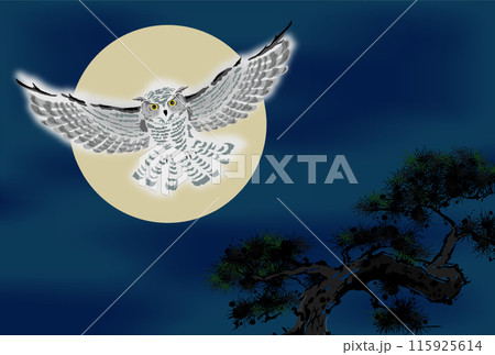 フクロウ 墨 月夜