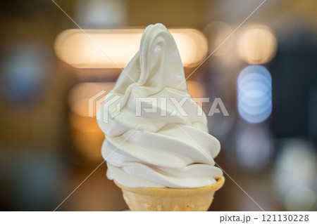 【食べ物素材】高原の濃厚ソフトクリームと青空【山梨県】