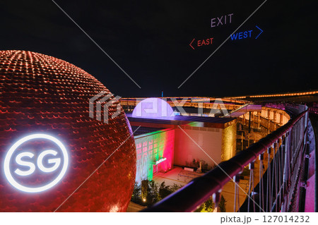 ライトアップされたLAKUNAはくい(石川県羽咋市)