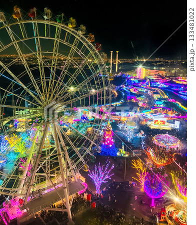カラフルなイルミネーションと観覧車