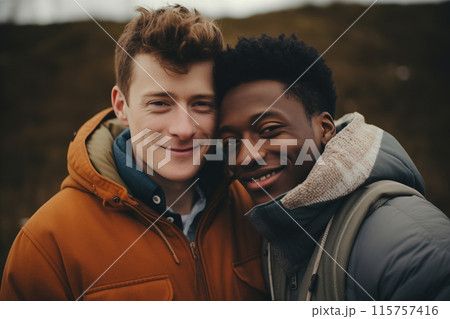 Multiracial LGBT couple in a loving embrace. The beauty of diverse love and highlighting unity within the LGBTQ community