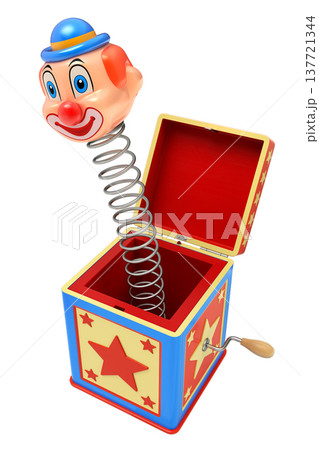 Jack in the box jumping out from a colorful box isolated on white background - 3d illustration