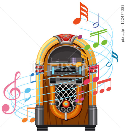 Retro Jukebox with Colorful Musical Notes Illustration