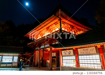 【奈良県】ライトアップされた春日大社と月