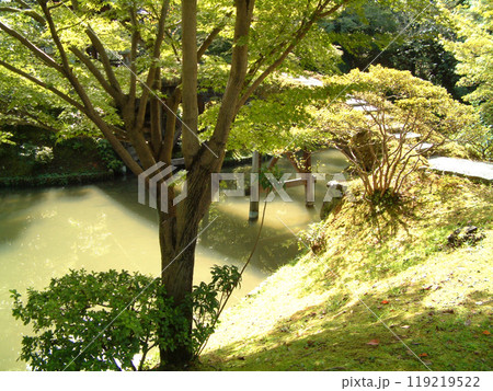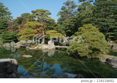 Japanese style garden in park 回遊式の和風庭園の紅葉(京都・桂離宮)