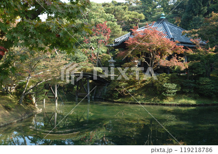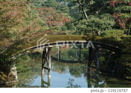 Path in autumn park / 回遊式の和風庭園の紅葉(京都・桂離宮),広角ワイド