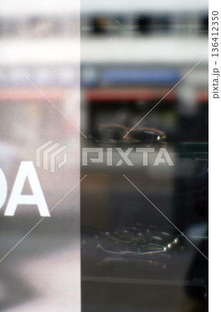 眼鏡店の窓と歩行者(ソフトフォーカス)