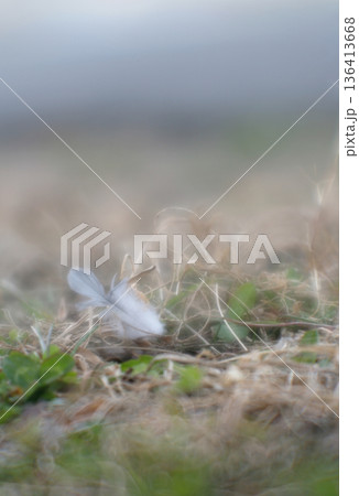 レンガ塀に咲く白い花(ソフトフォーカス)