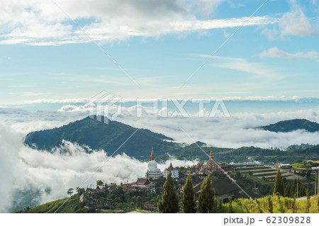 Wat Phra That Pha Sorn Kaew Statue temple. Nature landscape of Phetchabun district in Thailand for travel trip on holiday and vacation background, tourist attraction.