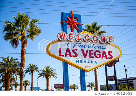 アメリカ ネバダ州のラスベガスのラスベガスサインの夕景 夕日
