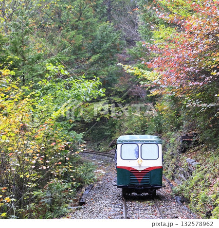 【長野県】赤沢自然休養林の紅葉のトンネルを走る赤沢森林鉄道