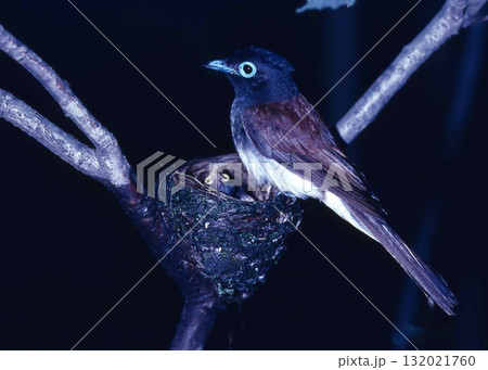 ヒナを見守るサンコウチョウのお母さん。