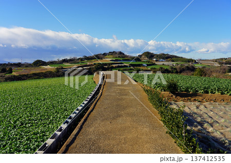 岩堂山へと続く畑の一本道