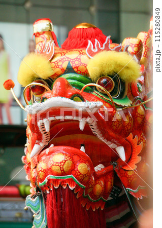 タイ、バンコクで見られる中国の旧正月、春節、獅子舞の風景