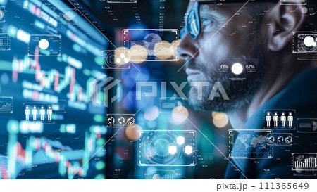 デジタルの世界で成功したビジネスのイメージ。DX サイバーセキュリティ、インターネット安全。AI画像