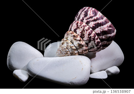 Maculated Top Shell Balanced On Smooth White Zen Stones