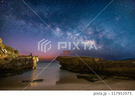 「茨城県」海辺に佇む磯前神社の鳥居 大洗海岸