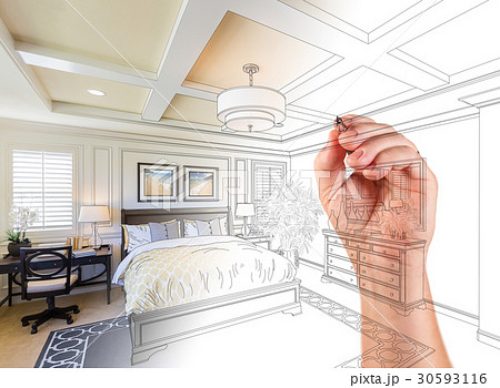 Hand Drawing Custom Master Bedroom Design With Gradation Reveali