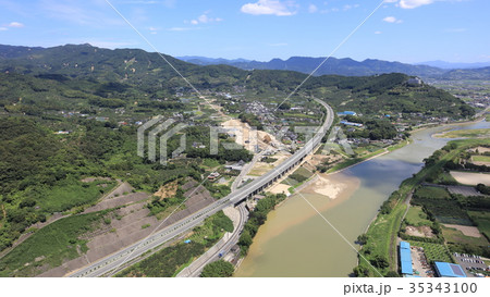 [空撮]筑後川 筑後川橋(通称名、片の瀬橋)大刀洗町と久留米市を結ぶ筑後川上の橋