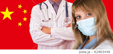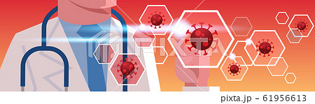 microscopic view of coronavirus cell 2019-nCoV flu outbreak doctor with stethoscope china pathogen respiratory MERS-CoV quarantine pandemic medical health risk concept horizontal