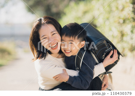 若い母親とランドセルを背負う男の子
