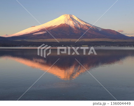 (山梨県)冬の山中湖・湖畔から眺める富士山