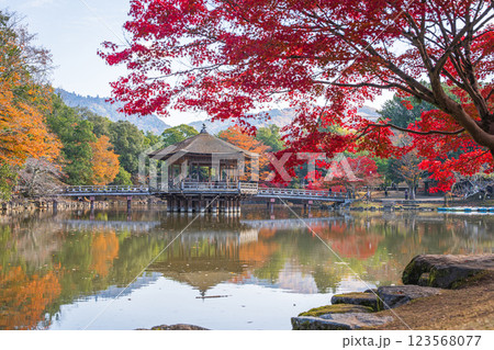 【紅葉】秋の奈良公園 鷺池に浮かぶ浮見堂