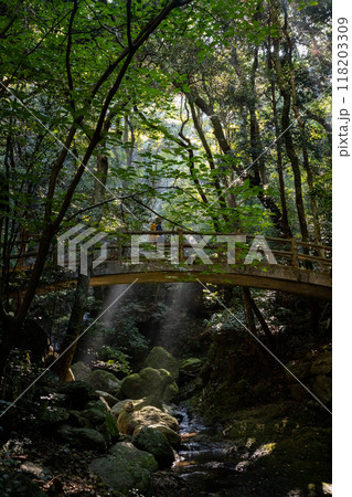 沖縄県西表島 マングローブのトンネルの中に差し込む朝の光