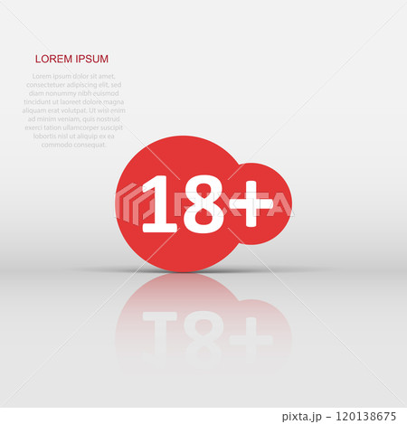 Eighteen plus icon in flat style. 18 vector illustration on white isolated background. Censored business concept.