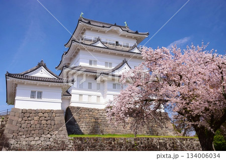 【神奈川県】快晴の小田原城 天守閣と隅櫓と満開の桜