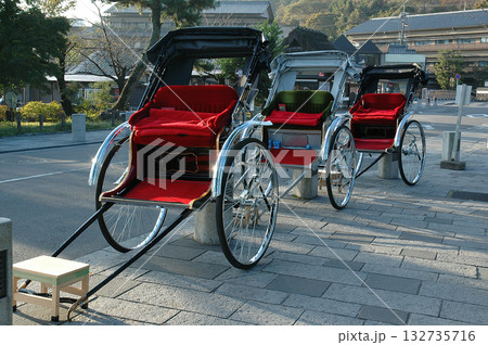 Kyoto Sagano / 有名観光地で待機している人力車の車列(秋の京都観光,嵯峨野・嵐山界隈)