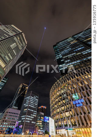 夜景 夜空 風景 大阪 ライトアップ ビル 都会 空 雲 夏 Osaka