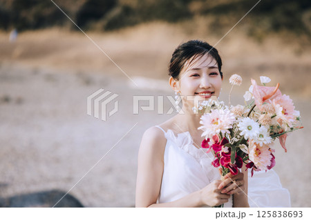 若い カップル 結婚式 ウェディング ドレス 花嫁 花婿 幸せ 祝う 人物 素材