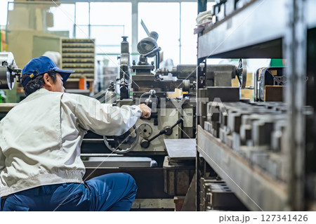工場で工作機械を操作する作業員
