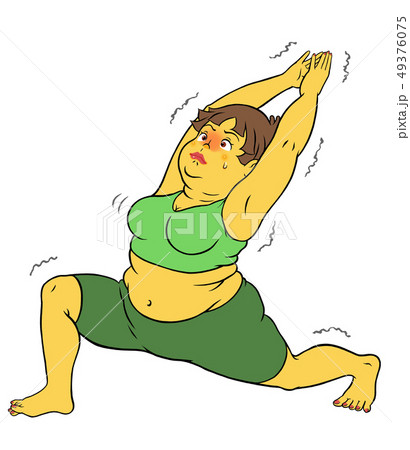ストレッチをする、ぽっちゃり女性