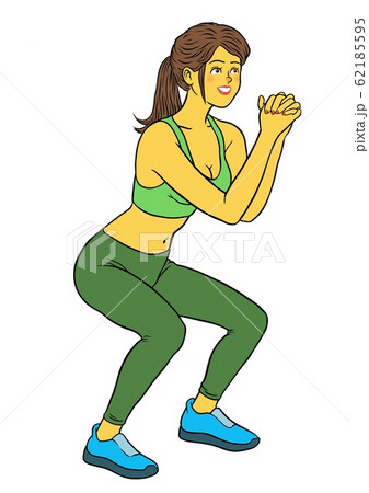 スクワットをするフィットネスインストラクターの女性
