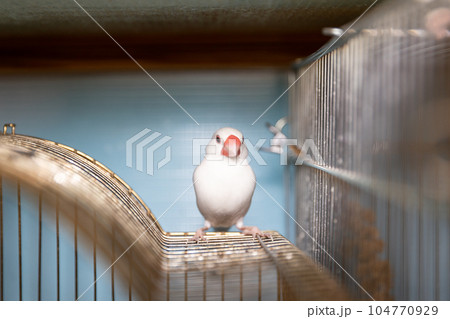籠の上でくつろぐ白文鳥のオス