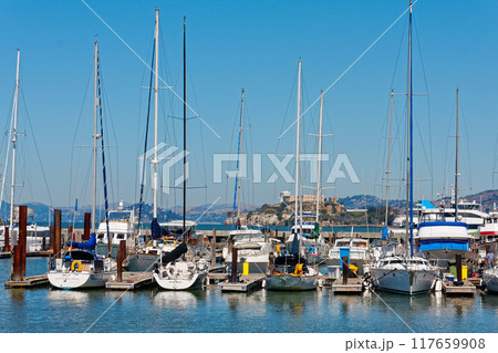アメリカ・サンフランシスコ・フィッシャーマンズワーフピア39からアルカトラズを見た眺め