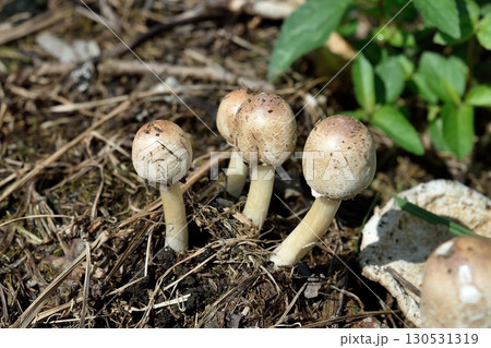 毒キノコの一種「オオシロカラカサタケ」の幼菌状態