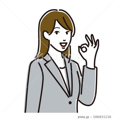 オッケーサインをするスーツ姿の若い女性