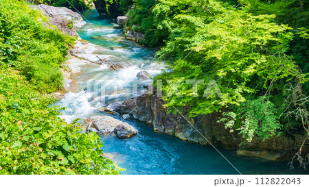 絶景の渓流風景です。神話伝説・鬼の舌震(オニノシタブルイと読みます)・静寂と神話のイメージです。