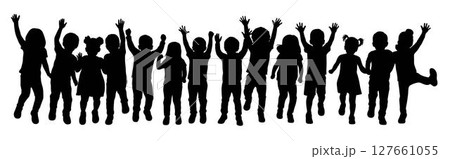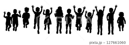 Kids jumping silhouette, happy kids, running isolated on white background