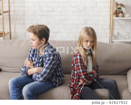 Brother And Sister Not Talking After Quarrel Sitting On Couch