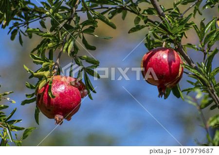 柘榴の木についている赤い柘榴の実