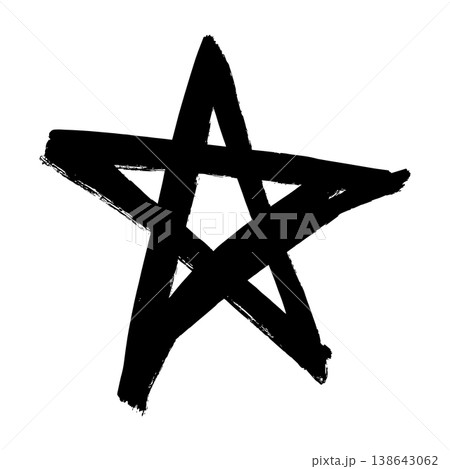 Black Hand Drawn Grungy Star Icon Isolated on White Background