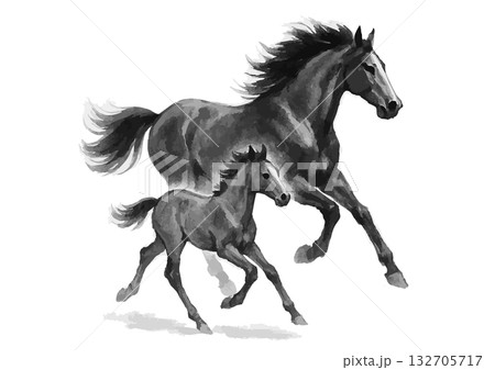 土埃をあげて颯爽と走る馬のイメージイラスト