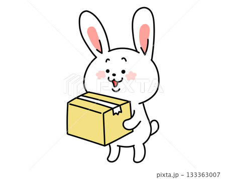 荷物を運ぶかわいいうさぎのイラスト