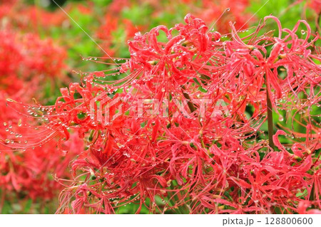 【秋】雨上がりの赤い彼岸花が咲いている様子 曼珠沙華
