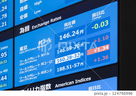 日本の東京都市景観147.41-42米ドル/円(最高値更新・4万5769円50銭。株価/終値)=3日