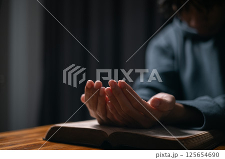 Woman clasped her hands in prayer, filled with faith and hope, believing in Jesus Christ, and seeking the holy presence of God through her prayers in the spirit of Christian religion. pray, woman.